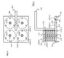 To accommodate the plural stacks ofelectronics modules101, the upper surface offixture440 comprises four groupings442i, wherein i=A, B, C, D, of threeelectrical contacts432A-1,432A-2, and432A-3 (collectively “432A-i”). These electrical contacts are directly analogous to the threecontacts232A-i on the upper surface of eachelectronics module101.Contacts432A-i are dimensioned and arranged to mate withelectronics contacts232B-i on the lower surface of each electronics module.