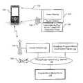 FIG. 1 is a system diagram that illustrates a wireless mobile communication terminal that senses a broadcast program/movie that is playing external to the mobile terminal, that communicates associated characterization data to a broadcast program/movie stream identification server, and that connects to an identified program/movie media server in accordance with some embodiments of the present invention;