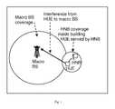 InFIG. 1, the HNB and the macro BS may operate in the same carrier frequency or in a different carrier frequency e.g. HNB and Macro BS operate in adjacent carrier frequencies. The HNB and macro BS may belong to the same or different access technologies. For instance both HNB and macro BS can be based on WCDMA. Alternatively HNB and macro BS are based on WCDMA and LTE respectively. In the latter case typically the HNB and LTE don't operate over the same carrier frequency; however they may very well operate in adjacent carrier frequencies. The adjacent carriers and the corresponding network (HBSs or macro BS s) may also belong to different operators.