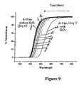 FIG. 19 is a graph of the transmittance spectra showing irreversible autocatalytic behavior for dextran coated nanoceria when incubated with hydrogen peroxide at pH 4.0.