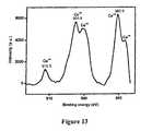 FIG. 12 is an X-ray photon spectroscopy (XPS) spectra of the aminated nanoceria showing the presence of a mixed valence, Ce+3and Ce+4similar to the spectrum of dextran coated nanoceria that is not aminated.