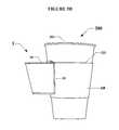 FIG. 5A is an upper perspective view of theshot glass1 of the preceding figures clipped to anupper edge222 of aninsulation sleeve220 around acoffee cup200. FIG.5B is a side view of thecoffee cup200 andsleeve220 with clipped onshot glass1 ofFIG. 5A. When desired, theshot glass1 can be clipped on theupper edge222 of theinsulation sleeve220, and be used to hold liquids, and/or condiments, and/or utensils, such as a plastic or wood stir, spoon, and the like, as well as be a receptacle for loose trash.