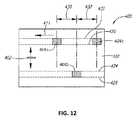FIG. 12 illustrates an example of a user interface for prompting a patient to inhale and exhale in accordance with some embodiments. As shown inFIG. 12, the first target404arepresents a prescribed inhale level desired to be accomplished by thepatient16. The target404ahas bottom and top sides that correspond to aminimum inhale level420 and amaximum inhale level422, respectively. Similar is true for thetarget404c. Thesecond target404brepresents a prescribed exhale level desired to be accomplished by thepatient16. Thetarget404bhas top and bottom sides that correspond to aminimum exhale level424 and amaximum exhale level426, respectively. In some embodiments, the distances (e.g., distances,430,432) between successive targets404 can be adjusted, depending on a particular need of a procedure. Also, in other embodiments, a length of a target can be adjusted, e.g., made longer to indicate that a breath-hold is desired. In some embodiments, the prescribed inhale level, the prescribed exhale level, and thedistances430,432 are user specific, and can be determined during a training session. Such will make the patient more comfortable because the interface is prescribing a manner of breathing in which the patient is accustomed to performing.