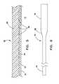In the example shown inFIGS. 4 and 5, reinforcingmember36 comprises a helical coil. The coil may be formed from materials well known for such use in the medical arts, such as a metal, a metal alloy (e.g., stainless steel or a shape memory composition such as nitinol), a multi-filar material, a composite material, etc. In order to minimize the outer diameter of thedistal segment30, it is preferred to provide a coil with a conventional flat wire construction. However, those skilled in the art will appreciate that coil materials of other cross-sectional configurations, such as round, oval, and various other geometric configurations, may be substituted if desired.Coil36 may extend substantially the entire length of distal segment. Preferably, however, the coil stops short of the proximal and distal ends of the distal segment. As shown inFIG. 4, terminating the reinforcing member short of thedistal end11 facilitates the ability to form a desired configuration (e.g., a distal taper) at the non-reinforced distal end, if desired. Terminating short of the proximal end facilitates joinder withproximal segment12, as further described herein.