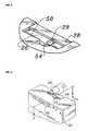 Thepad channel42 has two opposing, parallel channel sides46,48 interconnected by a pad abutment or stopedge50 perpendicular to the opposing channel sides46,48. The portion of theupper surface44 of thelid14 immediately adjacent to thepad abutment50 may have a finger access depression52 (e.g., a semicircular or half-moon, concave depression, as shown inFIG. 3). The depression52 may be centered on theabutment50 between the twochannel sides46,48, or it may be offset from the center of theabutment50 to one side or the other. In other embodiments, no such depression may be present.