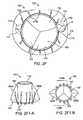 FIG. 2J is a top view of a prosthetic heart valve device (such as apparatus100) having a plurality of sealingmembers160 configured to extend toward tricuspid valve commissures of the native aortic valve as opposed to the bicuspid valve commissures of a native mitral valve. The sealingmembers160 are positioned around the support110 (shown in the expanded configuration113) and configured to extend into, over, or under tricuspid (e.g. aortic) valve commissures, so as to reduce the risk of regurgitation or perivalvular leaks. In the illustrated embodiment, the sealingmembers160 may include three separate portions angularly offset by about 120 degrees to as to extend into each of the three aortic commissures. In other embodiments, the sealingmembers160 may have a triangular configuration, so that the corners of the triangles extend towards the native tricuspid valve commissures.