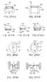 FIGS.6A1 to6B4 are bottom, front, side and isometric views of prosthetic heart valve devices (apparatus100) showingarms120 that cross from a support attachment site on a first side110S1 of asupport110 to a leaflet and/or annulus engaging site oriented on a second side110S2 of thesupport110 opposite the first side110S1. In one embodiment, each of the plurality ofarms120 comprises acurved elbow portion126 configured to span across adownstream portion114 thesupport110 and extend from the first side110S1 to the second side110S2. Accordingly, thebase portion124 ofarm120 can be coupled to a different side (e.g., side110S1) of thesupport110 than that on which thetip portion122 is positioned (e.g., side110S2). Thearms120 may be constructed like any of the various other embodiments described herein, including single wires or ribbons with looped tips as shown as in FIGS.6A1-6A4, or in complete loops as shown in FIGS.6B1-6B4. Upon expansion of thesupport110, thearms120 pull the native leaflets toward each other and/or toward theouter surface1105 of thesupport110, thereby enhancing the sealing of the leaflets against thesupport110 to prevent perivalvular leaks.