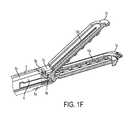 FIG. 1D shows that ifstop12 is moved away from engagingreciprocating element4, then reciprocatingelement4 may continue to move distally.Blade11 entersgap10 and cuts tissue grasped betweenjaws1a,1b. At the same time, upper and lowerjaw closure flanges5a,5bbegin to apply a high clamping force against the jaws and consequently against the tissue held between the jaws ingap10.
