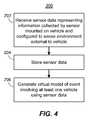 Themethod200 also stores the sensor data received atblock202 to a memory (block204). The memory may be similar tomemory72 ofFIG. 1, for example. Themethod200 then retrieves the sensor data from the memory, and uses the sensor data to generate a virtual model of an event involving at least one vehicle (block206). The event may be an accident involving the vehicle on or in which the sensor is located, for example, and/or involving one or more other vehicles. Alternatively, the event may be another type of incident, other than an accident, involving a vehicle. In each instance, however, the event is one that, when occurring, is at least partially sensed by the sensor located on or in the vehicle.