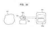 FIG. 30 shows the concept of AR. As shown inFIG. 30, a user terminal, e.g., a computer that the user can wear on himself or herself (referred to as awearable computer122 hereinafter), is always held in an ON-state to observereal world environments121 and to present appropriate information to the user as required.