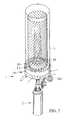 FIG. 7 is a perspective view showing the flame device producing a stable and prolonged flame in a stable fluid field, with the arrows showing the fluid field.