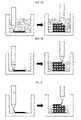 FIGS. 2A-2C are schemes that illustrate methods of constructing a three-dimensional article by submerging the nozzle into a foam (FIG. 2A), by adding foam in a layer-by-layer fashion (FIG. 2B), and/or by dropping material on top of a foam (FIG. 2C).