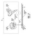 FIGS. 3A and 3B illustrate aconventional marking device50 with a mechanical actuation system to dispense paint as a marker. Generally speaking, the markingdevice50 includes ahandle38 at a proximal end of anelongated shaft36 and resembles a sort of “walking stick,” such that a technician may operate the marking device while standing/walking in an upright or substantially upright position. A markingdispenser holder40 is coupled to a distal end of theshaft36 so as to contain and support a markingdispenser56, e.g., an aerosol paint can having aspray nozzle54. Typically, a marking dispenser in the form of an aerosol paint can is placed into theholder40 upside down, such that thespray nozzle54 is proximate to the distal end of the shaft (close to the ground, pavement or other surface on which markers are to be dispensed).