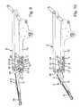 The twodeflection rollers15 and16 are parallel one to the other rotatably mounted on opposite legs of arocker21, wherein the rocker is see-sawingly mounted by means of a pivot bearing22 around a rocker axis parallel to the rotary axes of thedeflection rollers15 and16 on the interior side of thelongitudinal beam12. Thethird deflection roller17 is rotatably mounted around a rotary axis stationary relative to thelongitudinal beam12. Thefourth deflection roller18 is rotatably mounted on an upper end section of apivot lever19, wherein thepivot lever19 is mounted on thelongitudinal beam12 with its lower pivot point and articulated on asupport tab20 with an upper pivot point, with the support tab projecting downwards from theseat part arrangement2.