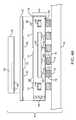 FIG. 4A is a cross-sectional side view ofwireless circuitry31 showing how packagedcircuitry40 may be formed by embedding components within a dielectric material. As shown inFIG. 4A, packagedcircuitry40 may include one or more electrical components such asintegrated circuit64 and other components66 (e.g., integrated circuits, discrete components such as inductors, capacitors, or resistors, switches, etc.). The circuitry of integrated circuits such ascircuit64 and otherelectrical components66 may be used to implement circuitry such as radio-frequency transceiver circuitry26 and impedance matching and filter circuitry28 (see, e.g.,FIG. 1).Material60 may include one or more insulating (dielectric) materials such as polymers (e.g., polyimide, epoxy or other resins, thermoset plastics, thermoplastic plastics, glasses, ceramics, other materials, or combinations of these materials).Material60 may, if desired, incorporate fibers such as glass fibers (e.g.,material60 may be a printed circuit material such as fiberglass-filled epoxy).Material60 may be formed from one or more layers. As an example,material60 may be formed from multiple layers of printed circuit board material (e.g., pre-preg) that are cured to form a multilayer printed circuit board.