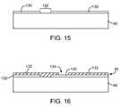 Following formation of patterned insulatinglayer130,conductive layer132 may be deposited on insulatinglayer130 to formshield layer38, as shown inFIG. 16.Conductive layer132 may be patterned to form openings such asopening134.Conductive layer132 may, for example, be deposited and patterned to form openings at the same time by depositinglayer132 using screen printing. Screen-printable conductive materials for forminglayer132 include metallic paints such as silver paint and other liquids with suspended conductive particles. Following drying, the metallic paint may form patternedconductive shield38. If desired, other deposition techniques may be used for forming patterned layer38 (e.g., ink-jet printing, pad printing, spraying, dipping, etc.).