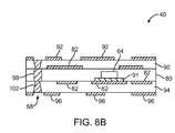 If desired, one or more integrated circuit die64 may be formed on an intermediate layer within packaged components such ascomponents40.FIG. 8B is an illustrative arrangement of packagedcomponents40 in which integrated circuit die64 is formed on anintermediate layer91. Intermediate layer85 may be formed from a layer of insulating material (e.g., resin or other insulating materials) deposited over a patternedconductive layer82. Intermediate layer85 may be formed by screen printing or other desired deposition techniques.