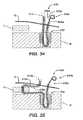 FIGS. 34-40 are schematic side views illustrating capture and tensioning of tissue utilizing another embodiment of sleeve and filament snare assembly according to the present invention;