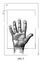 FIG. 6 is a diagram illustrating another challenge that may be used to create a biometric model, consistent with some embodiments. As shown inFIG. 6, the challenge requests thatuser120 place their fingertips in similar locations to those shown inFIG. 4. The challenge also requests thatuser120 move radially towards their palm. This movement may be detected bybiometric sensors224 and/orother sensors222 and used to determine additional information aboutmodel300 such as the unknowns of α and η. Consistent with some embodiments,display component214 is a touch screen device having sensors for detecting a touch of user and, thus,biometric sensors224 and/orother sensors222 are integrated intodisplay component214 and may be part of or a particular function associated withdisplay component214.