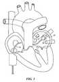Once thefirst treatment region28 has been positioned where desired, it may be operated to affect a desired therapy, such as tissue ablation. For example, the tissue ablation may be achieved by the circulation of a cryogenic fluid from the source and/or control unit14, to theelongate body16, and through the expandable elements of thefirst treatment region28. Thefirst treatment region28 may be used to create a first treatment pattern on the targeted tissue, and may include a substantially arcuate or rounded orientation around at least a portion of the pulmonary vein. Circulation of the coolant through thefirst treatment region28 may continue until a desired amount of tissue, e.g. a volume or depth of the tissue, has been ablated or otherwise treated. The extent of the tissue freezing with themedical device12 may be assessed or ascertained by measuring impedance on or about themedical device12 and the tissue region (using theelectrodes40 for example), by implementing visualization or imaging modalities distinguishing between frozen and non-frozen tissue masses, or by providing coolant circulation under predetermined parameters (such as pressure, flow rate, delivery duration, etc.) that have previously been established as providing the desired effect under experimental or pre-clinical investigation.