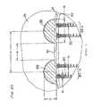 Each lead is preferably insulated from other leads and electrical connection between each lead98 and itsrespective electrode80 may be made in any suitable manner. As illustrated, electrical connection between each lead98 and itsrespective electrode80 is provided in one of the slots through which the respective electrode extends, as illustrated inFIGS. 18 and 22.FIG. 18 is a transverse cross-sectional view through a rib and the balloon wall at one of theslots94. As seen there and inFIG. 22, which is a longitudinal sectional view, the distal end of thelead98 extends radially outwardly from the conduit run96 and connects to itsrespective electrode80 that extends through such slot.
