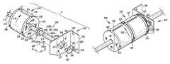 In the embodiment illustrated inFIG. 3, for example, the pawl74 is engageable with the teeth of thedriving gear44 such that during rotation, thepawl46 enables only one-way rotational movement of the drivengear42 to tension thespring element15 and prevent the release of stored energy. In operation, thedriving gear44 is manually turned or turned by a power tool capable of imparting rotational motion via thepin50. Such movement rotates thecasing16 relative to thecentral shaft12, which remains stationary during tensioning. Since one end of thespring element15 is secured to thecasing16 and the opposite end of thespring element15 is secured to the arbor22 (which remains stationary along with the central shaft12), rotational movement of thecasing16 increases the tension, and thus, the stored energy of thespring element15. Such rotational movement of thedriving gear44 continues until the desired spring tension is reached.