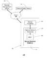 Thesecure element108 andSDP106 can communicate with a remote management (function)server120, located remotely fromdevice102. Theremote management server120 can be a platform for provisioning and/or managing applications in thesecure element108 andSDP106. Theremote management server120 can also manage data (such as keys, credentials, and so forth) that are used by the applications. Examples of remote management servers are described in U.S. patent application Ser. No. 13/679,479 filed on Nov. 16, 2012 and U.S. patent application Ser. No. 13/680,680 filed on Nov. 19, 2012, the disclosures of both of which are hereby incorporated by reference.