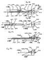 Referring toFIG. 41, a device799 for repairingtear12 intissue14 includes a fixation member such as a barbed fixation member800 and asuture820.Suture820 has anend810 attached to the fastening member800.Suture820 is formed in a loop830 with a second end832 ofsuture820 attached tosuture820. The delivery device399 (FIG. 36) can be used to deploy the device799 withsuture820 being tightened to closetear12 by pushing the fastening member800 in the direction of arrow840, rather than pulling on a free end of suture. The barbed fixation member800 limits loosening ofsuture820.