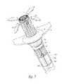 In the example ofFIG. 17, the lines (41) supplying the expandable units (71,72) are hydraulic or pneumatic lines (41) extending radially from the lower edge of the sheath to the augmentation units. The line (41) for the augmentation unit A2 extends along the line φ=15° and ends at the height of z=54. The line (41) for augmentation unit A2 extends along the line φ=165° and ends at the height of z=31. The line (41) for augmentation unit A3 extends along the line φ=270° and ends at the height of z=65. The line (41) for the positioning unit P extends along the line φ=330° and ends at a height of z=25.