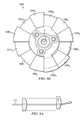 FIGS. 65A-65D illustrate various views of anexample device10 that utilizes a disc-shapedrotating scanning element100A, according to certain embodiments. In particular,FIGS. 65A-65D illustrate an example arrangement of a disc-shapedrotating scanning element100A, aradiation engine12 similar to that shown inFIG. 34, an optional downstream optic64′, abattery20, and anapplication end42 that includesvarious sensors200,204, and214 disposed around optional downstream optic64′.