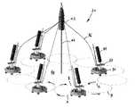 Along with the mobile tow carrier devices, stationary tow carriers may be present, such as for feeding longitudinal fibers, or other fibers. Optionally, the stationary carriers may be adapted to communicate with the mobile tow carrier devices.