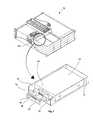 In the example shown inFIG. 2,vibration damping grommets30 are provided which serve to provide some physical support for thedisk drive18 within thecarrier16 whilst still providing a degree of vibrational isolation between the disk drive and the carrier. The disk drive is therefore neither entirely unsupported nor rigidly coupled to or within the carrier.