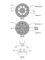 FIGS. 3A and 3B show two particular examples of primary and secondary coils for use in a resonant inductive coupling. In one example, aprimary coil32 is provided on a backplane (not shown). Thesecondary coil34 is sized to receive theprimary coil32 upon engagement. A cylindrical orannular region36 is defined between the primary coil and the secondary coil which, in the example ofFIG. 3A is filled with air. In the example ofFIG. 3B, the space between theprimary coil32 and thesecondary coil34 has a vibration damping material within it. This can be provided on one or both of the primary and secondary coils. In one preferred example, as shown in cross-section inFIG. 3C, the arrangement of the vibration damping material is tapered on one or both of the coils such as to enable an easy fit between the two. This is shown in one particular example inFIG. 3C which shows a tapered region ofvibration damping material38 provided on theprimary coil32 and acorresponding region40 of taperedvibration damping material40 on thesecondary coil34.