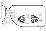 FIG. 4 illustrates another example of a near fieldvirtual object470. Near fieldvirtual object470 takes on a different shape, may provide, for example, a branded menu for a particular point of interest. In the example shown inFIG. 4,virtual object470 is illustrated as a pizza, associated with “Bob's Pizza” restaurant. A virtual tether remains to theoriginal marker1050 from which thevirtual object470 has originated.