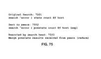 FIG. 75 illustrates an exemplary search query received from a client and executed by search peers in accordance with one or more implementations of the present disclosure.