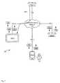 Eachlink106,108 comprises any suitable link withnetwork107, including any suitable combination of wired and/or wireless links, wired and/or wireless devices and/or wired and/or wireless networks, including but not limited to any suitable combination of USB (universal serial bus) cables, serial cables, wireless links, cell-phone links, cellular network links (including but not limited to 2G, 2.5G, 3G, 4G+, and the like) wireless data, Bluetooth links, NFC (near field communication) links, Wi-Fi links, WiMax links, HDMI (High-Definition Multimedia Interface), packet based links, the Internet, analog networks, the PSTN (public switched telephone network), access points, and the like, and/or a combination.