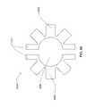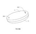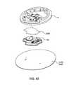 Referring now to bothFIGS. 98 and 99, embodiments in which anadhesive patch3100 has been divided into at least two smaller adhesive patches are shown. In these embodiments, theadhesive patch3100 is divided into two adhesive patches,3410 and3420, each havingadhesive members3111 radially arranged around acentral void3430. The two adhesive patches,3410 and3420, each span a semi-circle of about 180°, but other configurations could be used such as: three patches, each spanning 120,° or four patches each spanning 90°. In some embodiments, the adhesive can include greater than four patches. The configurations described with respect to these embodiments follow theformula 360°/n where n is the number of patches. But, in other embodiments, depending on the shape of the device, the formula shown and described here does not apply. In still other embodiments, the patches may also cover more than 360°, and thus overlap.