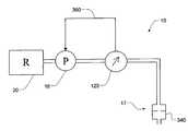 FIG. 14 shows a block diagram of a fluidic line with a valving pump;