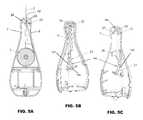 FIG. 5A shows a cross section ofreel assembly2 with wound-upribbon3 and aguide23.FIGS. 5B and 5C are perspective views of the interiors of housing sides “A” and “B,” including a spool guide (24,27), ribbon guides (23,25,28,29) and aribbon catch26. Thereel142 is sized to fit within aspool guide146 formed by spool guide “A”24 and “B”27, which provides ribbon tension to preventribbon3 from bunching up and/or unwinding outside of the reel walls when the tension of the ribbon has slack. For example, gestural movements of the hand may cause theribbon3 to lose tension. Tension loss may also occur in the case when aballoon37 hits a ceiling that is lower than the full length of the reeled outribbon3. In case of ribbon tension loss, the spool guide reduces the amount of slack to prevent ribbon tangling, bunching or escaping the spools walls. In the illustrated embodiments, thespool guide146 comprises a pair of parallel, inwardly projectingvertical walls147 spaced apart so as to accommodate the width of thereel142 and alower wall148 for retaining thereel142 within thespool guide146.