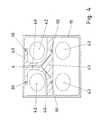 Thus, on one hand,adapter flange10 has the function of a housing part for the summation gear, and on the other hand, the function of reuniting and conducting the coolant out from the individual motors. In addition, it connects the motors to gear-unit housing70 and makes it possible to align and center the motors relative to the gear unit.