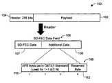 The examples described herein are exemplary uses of theadditional data108 in the SD-FEC data field106, however, it will be understood that theadditional data108 are not limited to the examples herein. Theadditional data108 in the SD-FEC data field106 may be any communication or data that may, for example, be desirable to access without necessarily accessing the user data traffic in thepayload portion102 of thedata frame100, or for example, may be useful in an in-band communication environment.