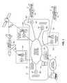 Alternatively, while avehicle12 is traveling a route and/or between an origination point and a destination point (e.g.,vehicles12aand12b), and is not near or in communicative connection with any port, thevehicle12 may communicate with the ground-basedcommunication system10 using one or more access networks62a-62c(e.g.,vehicles12a-12c). In the displayed embodiment ofFIG. 1, an airplanevehicle communication system11 would generally rely on eitheraccess networks62aor62bto communicate with the ground-basedcommunication system10 while in flight (vehicle12a). Generally, an access network62a-62cmay include one or more computing devices that are communicatively connected. The access network62a-62cmay include a single computing device or multiple computing devices arranged in a local network configuration. The computing devices may be located near one or more access point antennas. In some embodiments, at least some of the computing devices in the access network62a-62care also included in thenetwork55. One or more access networks62a-62cmay be included in the ground-basedcommunication system10 so that vehicles may be in communicative contact with thesystem10 during transit. In some embodiments, one or more access networks62a-62cmay be excluded from thesystem10 but still may be in communicative connection with thesystem10, such as when respective providers of the ground-basedcommunication system10 and of a particular access network are different businesses or organizations.