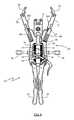 FIG. 47 is a side view of a retractor assembly according to the present invention, comprising a handle assembly having three (3) retractor blades extending there from (posterior, cephalad-most, and caudal-most), shown in a first, closed position and disposed over the tissue distraction assembly ofFIG. 46;