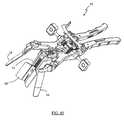 FIG. 49-50 are perspective and top views, respectively, of the retractor assembly in a second, opened (i.e. retracted) position to thereby create an operative corridor to a surgical target site according to the present invention;