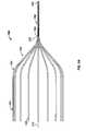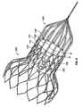 Stent202 preferably includescollapsible cell openings222 defined along the length and around the circumference of the stent. Thecell openings222 may all have the same shape or may differ in shape in different portions of the stent. For example, as shown inFIG. 4,stent202 may have diamond-shaped cell openings adjacentdistal end218 and generally arrow-shaped openings adjacentproximal end220. As shown, both the diamond-shaped and arrow-shapedcell openings222 includeapexes223. It will be appreciated, however, thatstent202 may have any shape or size ofcell openings222, including those without apexes.