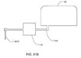FIG. 100 shows a perspective view of an embodiment that includes using the multiple adhesive patches to extend the time during which adevice10 remains adhered to a patient (not shown) before removal. One of the multiple partialadhesive pads3420 is removed while thedevice10 is held in place (either by a remainingadhesive patch3410 and/or by a user). The removedadhesive patch3420 is then replaced with a fresh replacement adhesive patch (not shown). The replacement adhesive patch may be identical to the removedpad3420 or may haveadhesive members3111 that are positioned in an alternate configuration to allow adhesion to the fresh skin between the areas previously covered byadhesive patch3420. The remainingadhesive patch3410 may then be replaced in a similar manner. Indicia such as color coding may be used to indicate the age of the adhesive patches. The patches may also have a color change mechanism to indicate that their useful life has expired. Decorative patterns, such as images and designs, may be included on the patches.