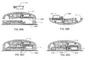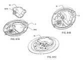 Referring now to bothFIGS. 98 and 99, embodiments in which anadhesive patch3100 has been divided into at least two smaller adhesive patches are shown. In these embodiments, theadhesive patch3100 is divided into two adhesive patches,3410 and3420, each havingadhesive members3111 radially arranged around acentral void3430. The two adhesive patches,3410 and3420, each span a semi-circle of about 180°, but other configurations could be used such as: three patches, each spanning 120,° or four patches each spanning 90°. In some embodiments, the adhesive can include greater than four patches. The configurations described with respect to these embodiments follow theformula 360°/n where n is the number of patches. But, in other embodiments, depending on the shape of the device, the formula shown and described here does not apply. In still other embodiments, the patches may also cover more than 360°, and thus overlap.