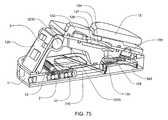 In theFIG. 74, the top non-disposable portion X also includesmain PCB13, avibration motor3210 and apumping actuation member54. The top, non-disposable portion X includes the AVS assembly or dispensingassembly120. InFIG. 74, amicrophone133 is shown. The top, non-disposable portion X also includes abattery15, which may be used to provide electrical power to electronics on the non-disposable portion and/or the disposable portion. In some embodiments, thisbattery15 is rechargeable. Recharging can be done by methods described below. The disposable portion Y includes the wetted components including a fluid line (not shown) and the pumping assembly. InFIG. 74, only the pumpingplunger54 can be seen. This embodiment of thedevice10 can also include many of the elements described above, including, but not limited to, a fluid impedance, a flexible membrane, a cannula housing and a sensor housing. Any pumping mechanism can be used.