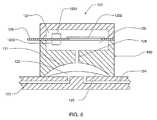 Aseptum6270 is seated in aneck6240 extending from thebody6200. Theseptum6270 serves as an interface between thecavity2645 and a fluid line. In some devices, the fluid line terminates in a needle (not shown). In these embodiments, the needle may be inserted through theseptum6270 to access aneedle chamber6280 portion of thecavity2645. Theseptum6270 location can be maintained by its location between acap6250 and a ledge (not shown) formed at the junction of theinner wall6281 of theneedle chamber6280 and thecap bore6282. Thecap6250 may be held by a friction fit within thecap bore6282. Upon insertion of thecap6250, its position is limited by thewall6261 of thecap bore6282. The portion of thecap6250 closest to theseptum6270 may have a central aperture to allow insertion of the needle through thecap6250 and into theseptum6270. Alternately, thecap6250 may be punctured by the needle.