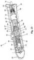 Themechanism housing20 is a generally cylindrical sleeve having a wider proximalcylindrical section22 at a first end, a narrower distalcylindrical section24 at a second end thereof, and a taperingconical section26 therebetween. An inwardly and outwardly projectingflange28 extends from the second end of themechanism housing20, for engagement with a distal end of the drive spring90 (on the forward face of the inwardly directed portion of flange28), and with a proximal end of the ejector spring110 (on the rear face of the outwardly directed portion of flange28), when the independent drive core mechanism is assembled. Themechanism housing20 is generally hollow, having an internal bore extending axially from the first end to the second end. A stroke-limitingslot30 extends axially lengthwise through a lateral sidewall portion of themechanism housing20, along portions of the distalcylindrical section24 and theconical section26 thereof. A resiliently flexingfinger32 has a free end defining the proximal end of the stroke-limitingslot30. Thefinger32 flexes outwardly during assembly to allow installation of thedrive plunger40 into themechanism housing20. Atrigger slot34 extends axially lengthwise through an upper sidewall portion of themechanism housing20, along portions of the proximalcylindrical section22, the distalcylindrical section24, and theconical section26 thereof. A shoulder orother catch member35 projects into or adjacent thetrigger slot32. A channel orother guide member36 extends axially along a lateral exterior sidewall of themechanism housing20, and an outwardly projecting member or lug38 extends from an upper sidewall of the mechanism housing. Theguide member36 and/or thelug38 serve as retention members for engagement with a cooperating portion of an external housing into which the independentdrive core mechanism10 is installed.